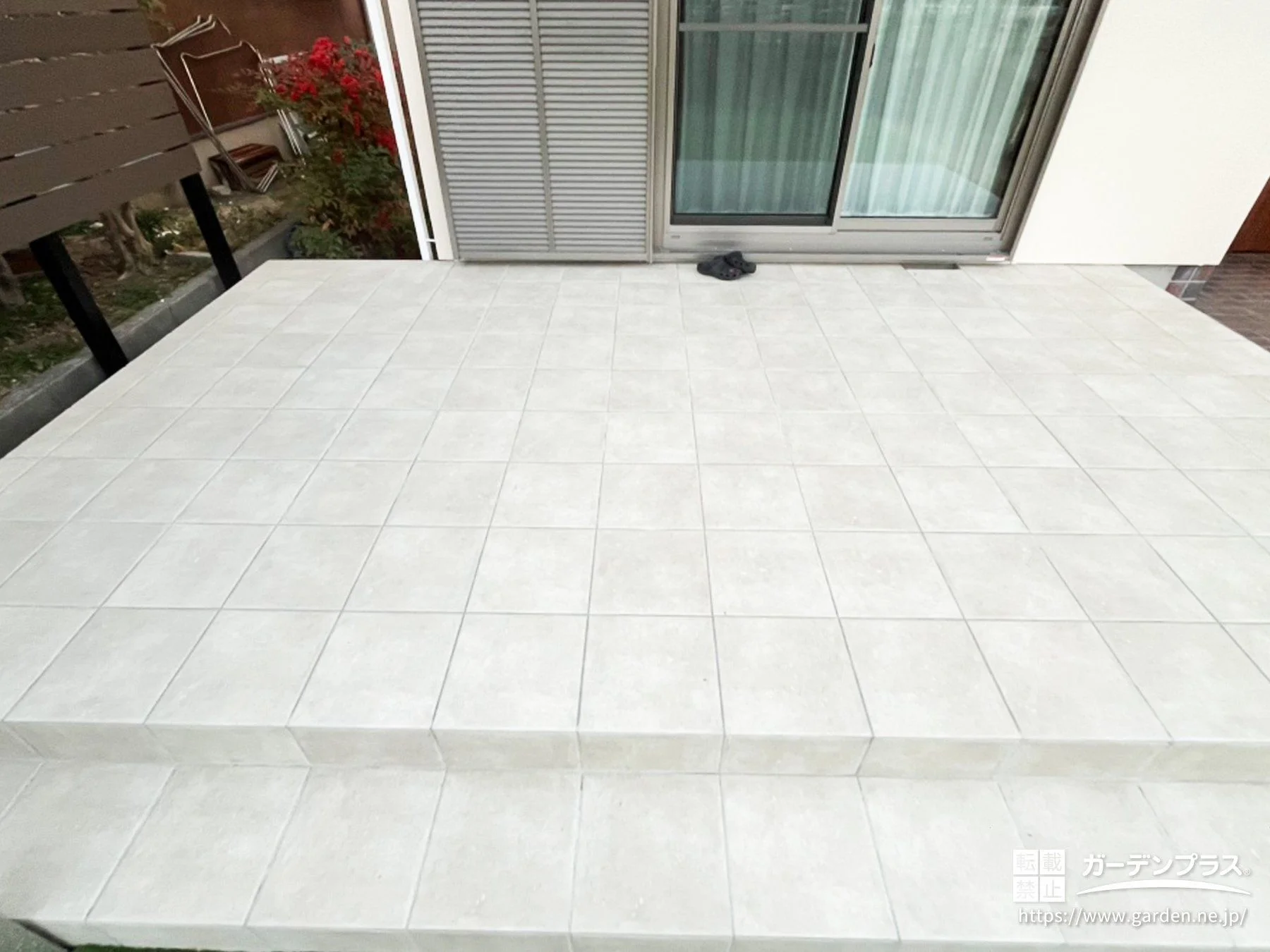 タイルデッキ:下地コンクリートブロック + タイル張り LIXIL パセオ 300角