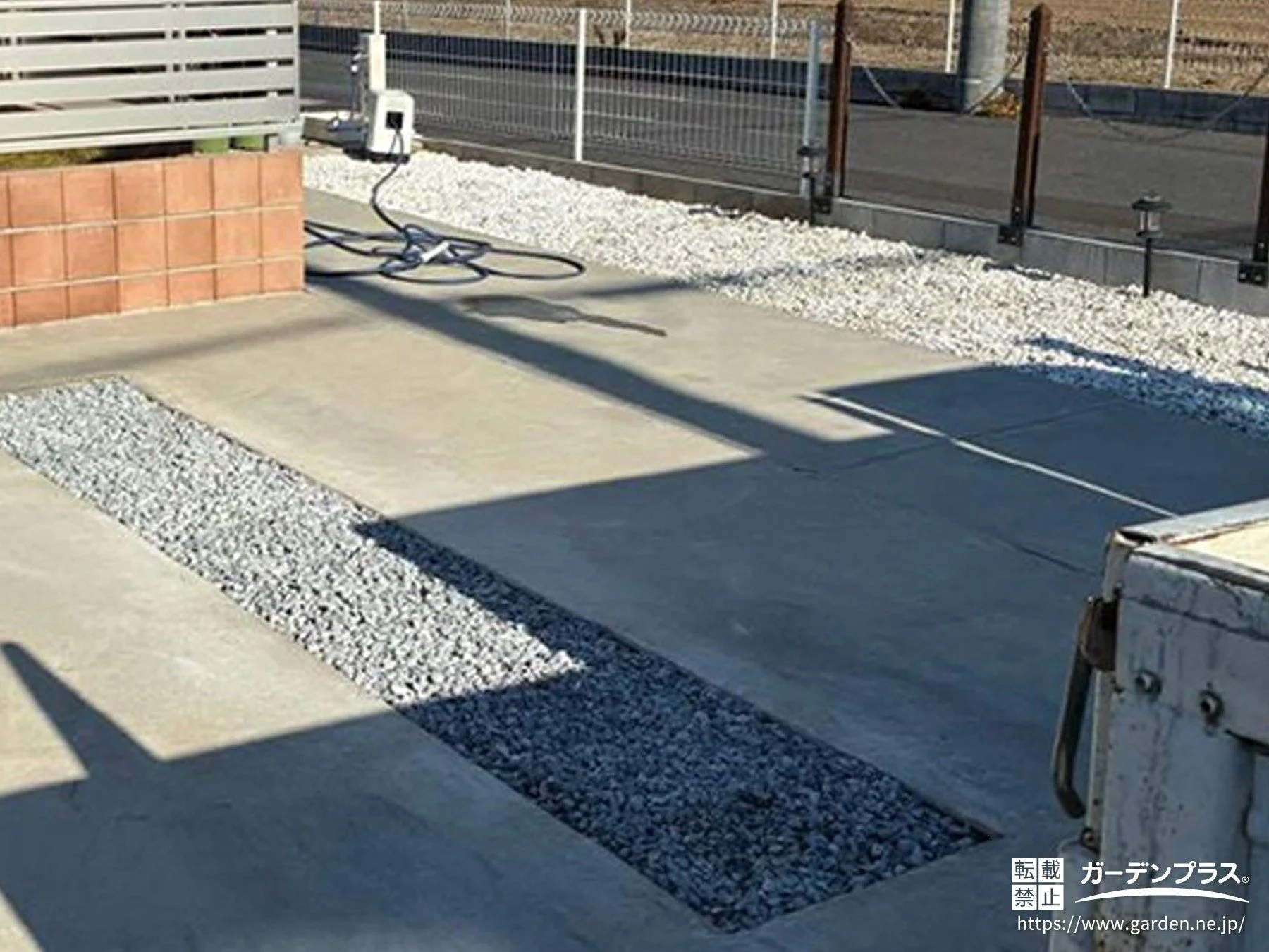 駐車スペーススリット:防草シート + 化粧砂利