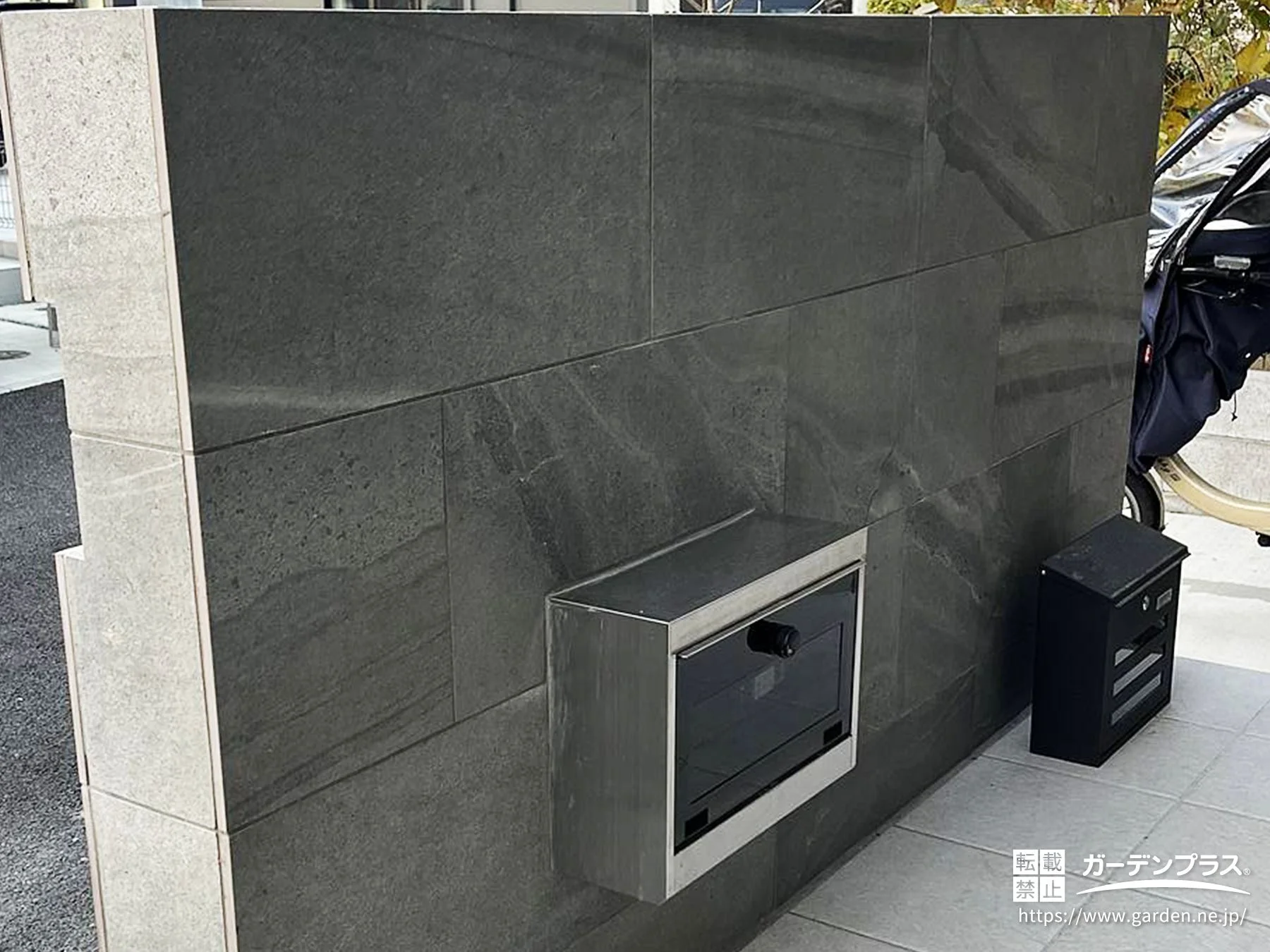 門柱:ブロックベース + コンクリートブロック + タイル張り LIXIL アヴァンティ IPF-630/AVT-12