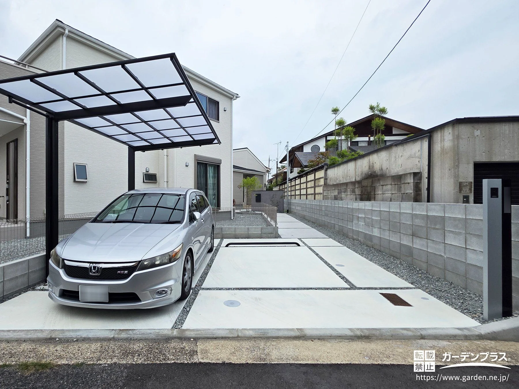 土間コンクリートとスリット砂利で整えた駐車スペース