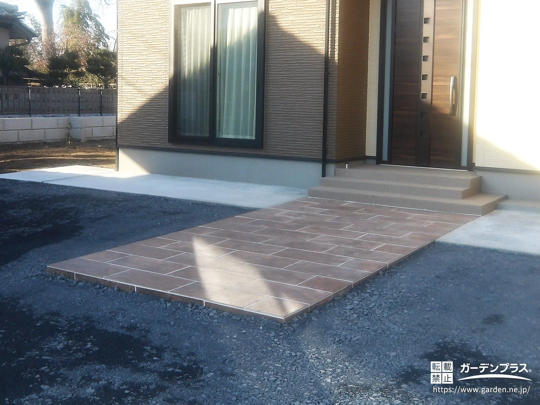 温かな大判タイルで描く、上質なアプローチ動線