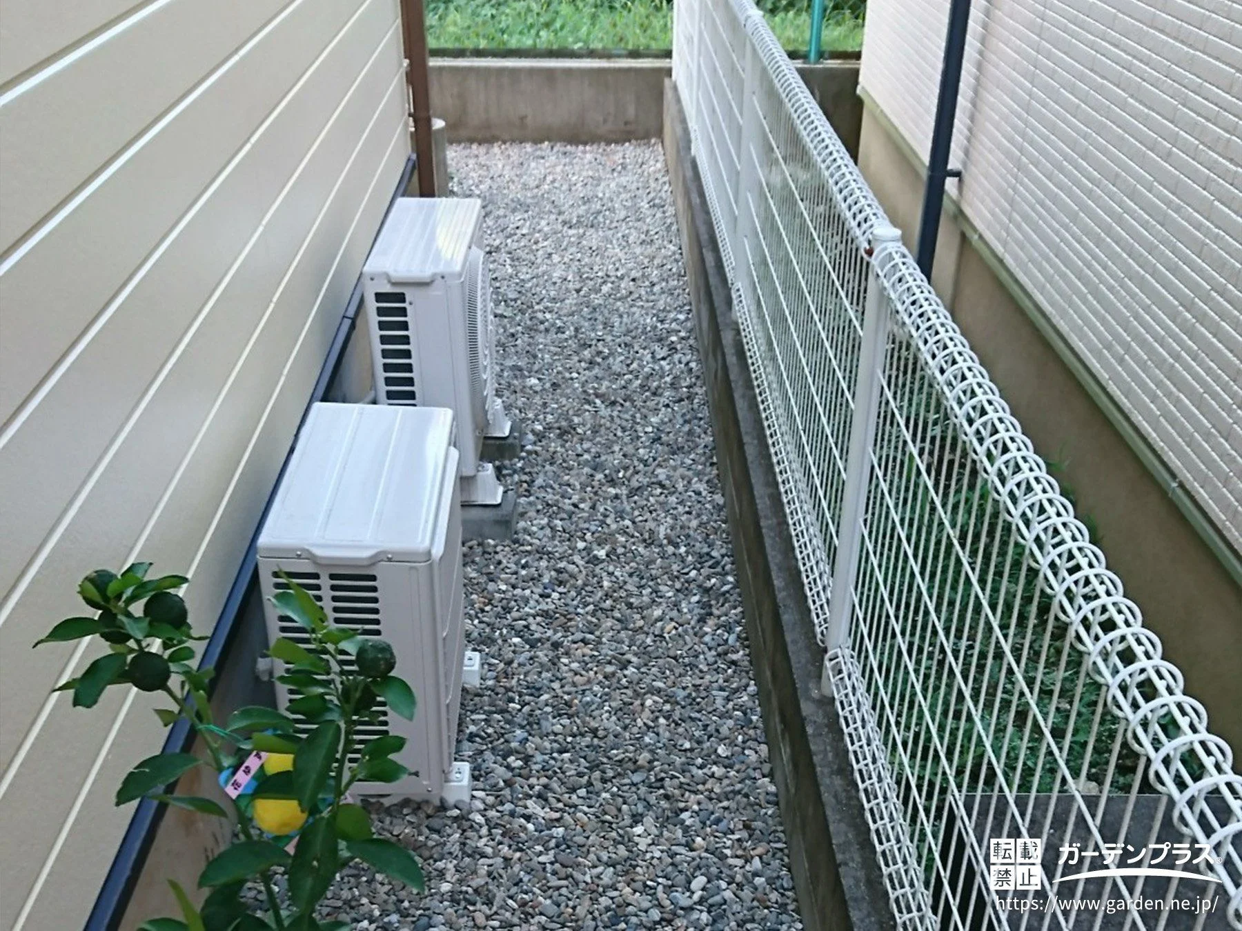 犬走りに防草シートと防犯砂利を敷設しました。雑草対策になり、防犯性も向上しています。