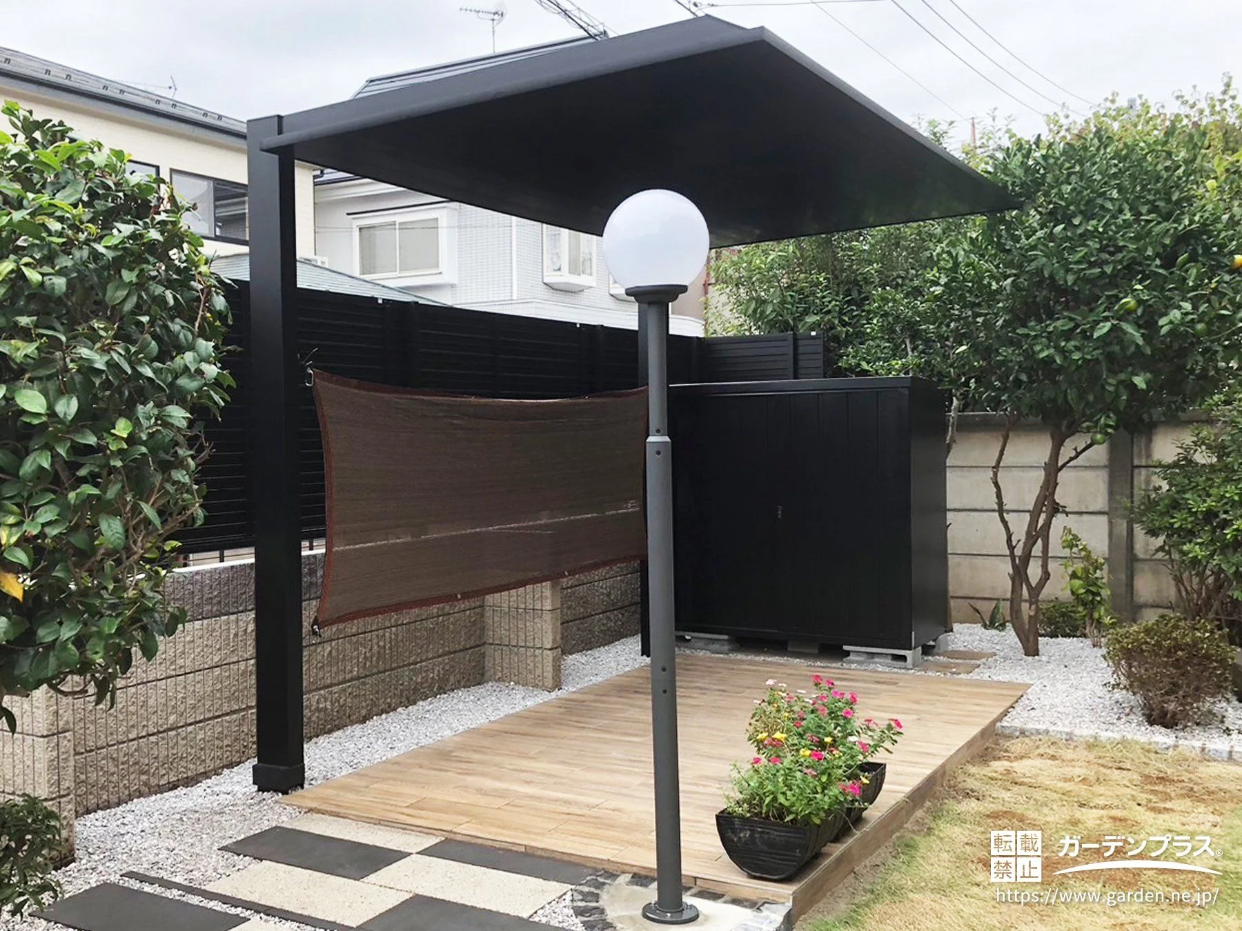 園路と植栽がつながる、趣味を楽しむ“離れテラス”のある庭へリフォーム工事