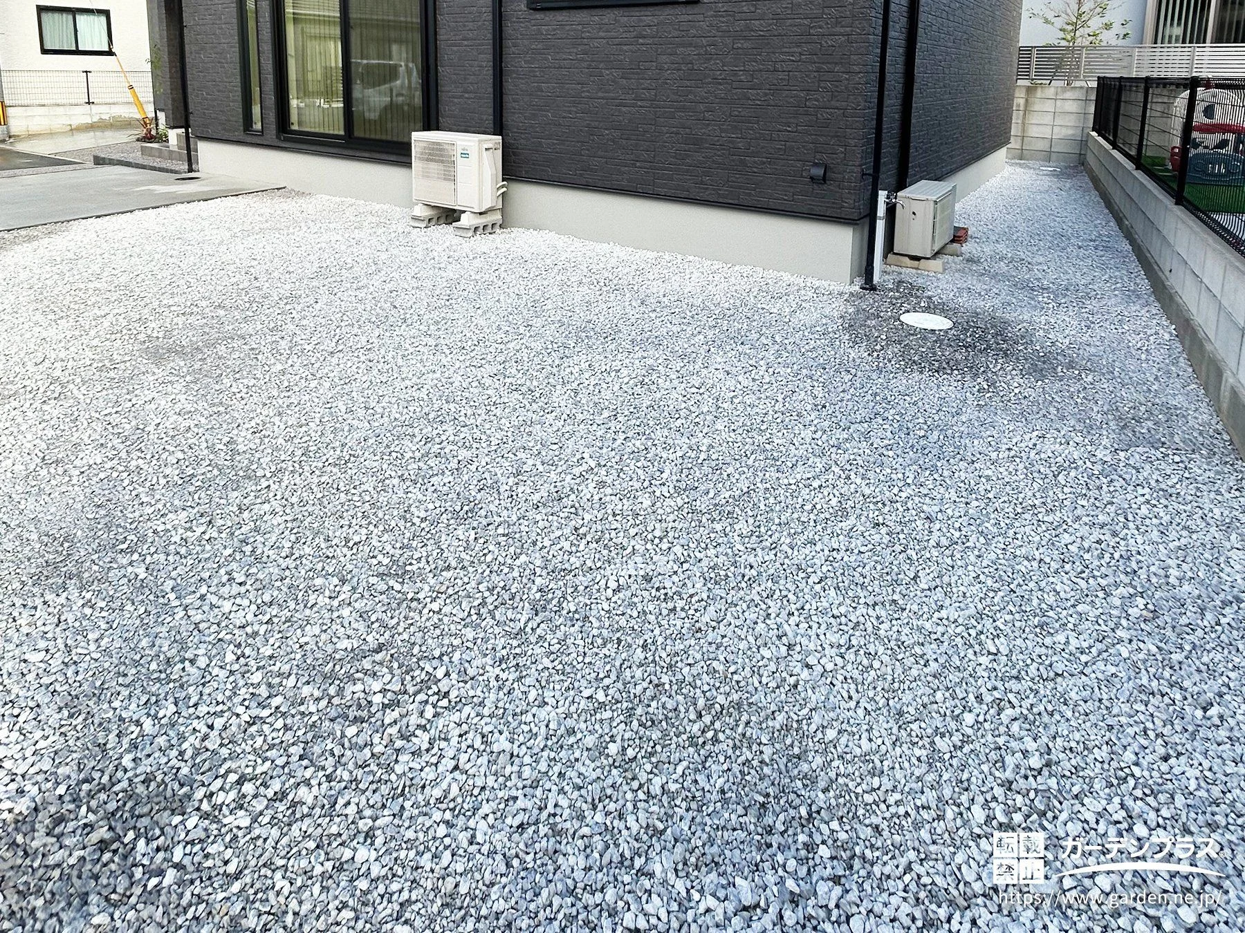 建物周りを清潔に整える、防草シートと砂利
