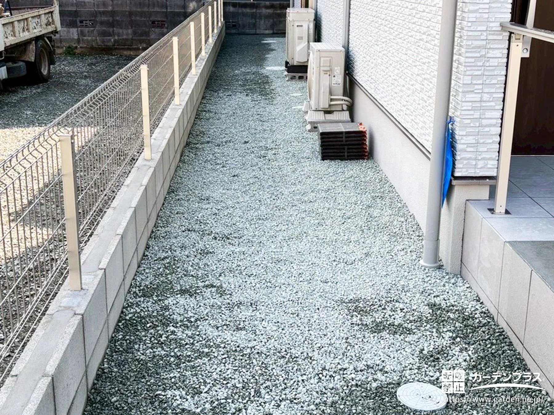 犬走り:防草シート + 砂利