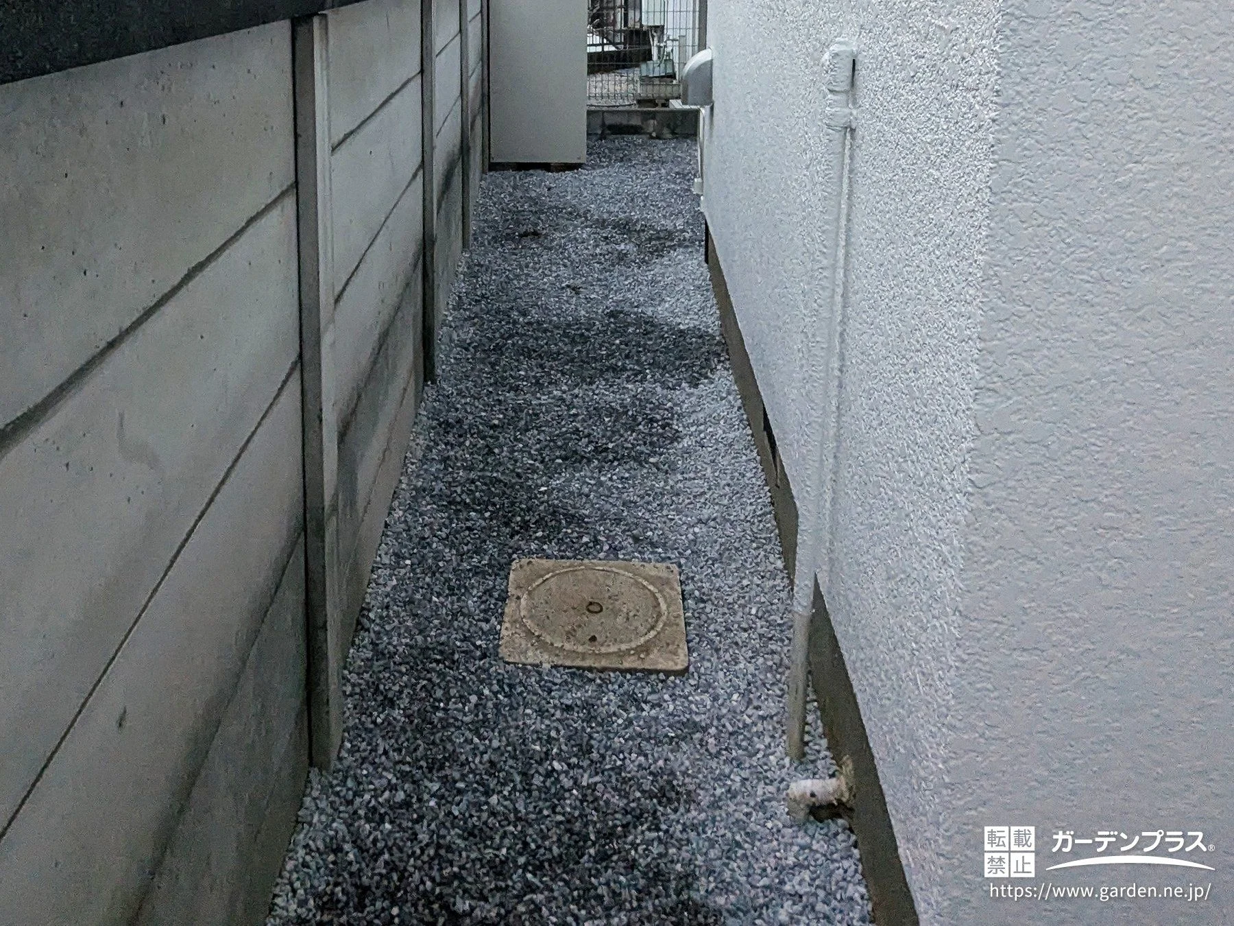 犬走り:防草シート + 砂利