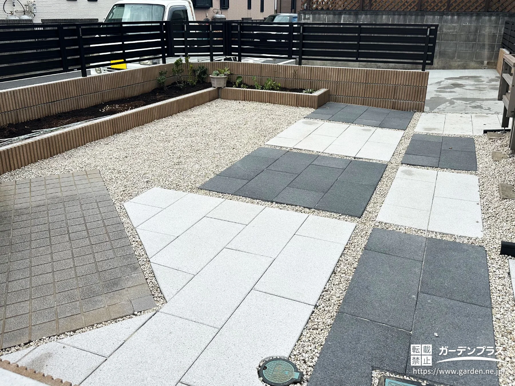 主庭:防草シート + 化粧砂利