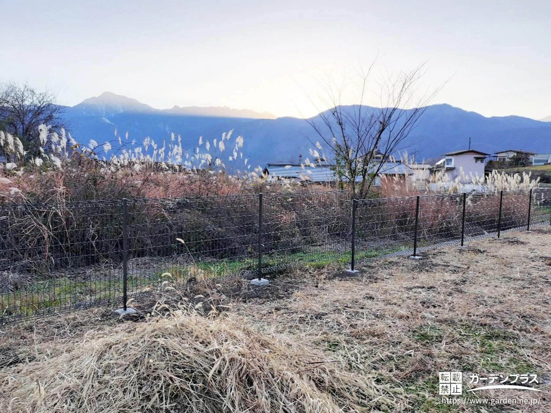 お庭の敷地境界にメッシュフェンスを設置しました。風通し良く、圧迫感を与えずに境界を明確化しています。