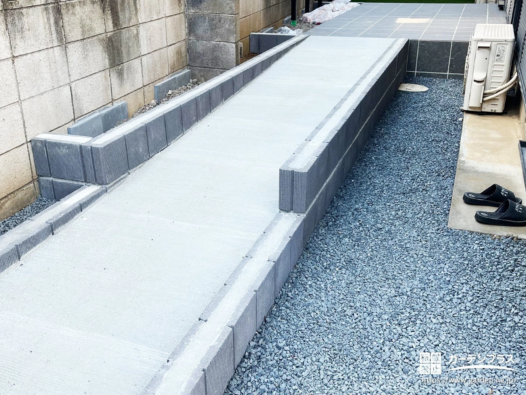 スロープ:下地コンクリートブロック + 土間コンクリート 刷毛引き仕上げ