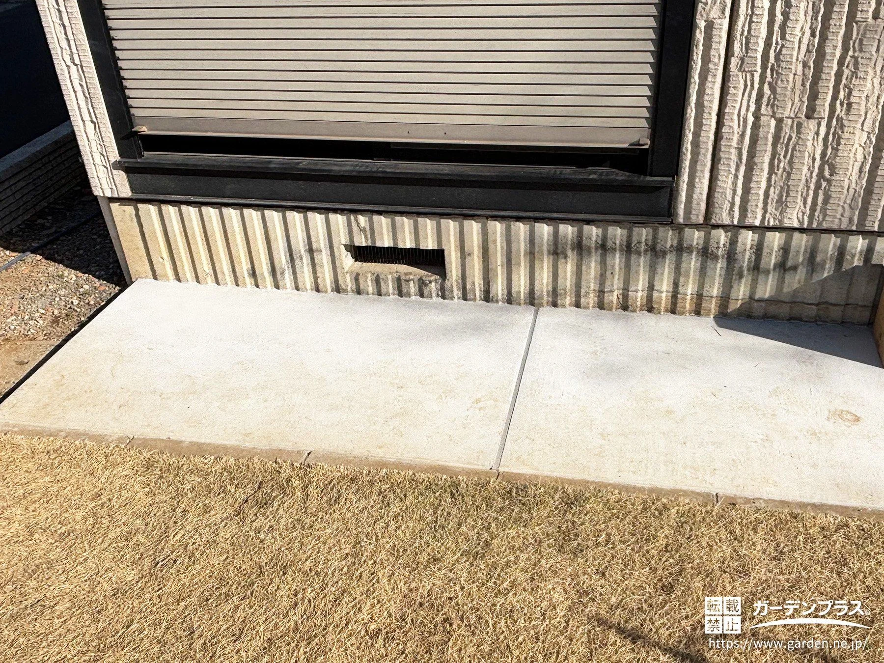 掃き出し窓前に土間コンクリートを打設しました。足元がと遠い、リビングとお庭の行き来が快適になります。