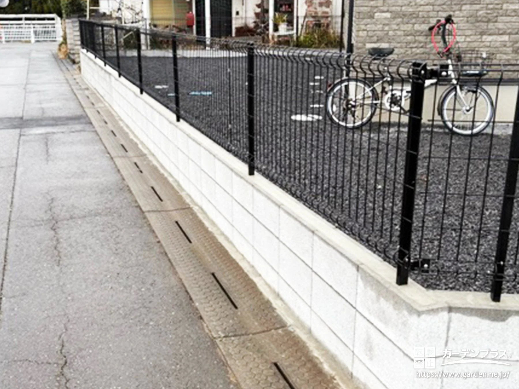敷地の境界には型枠ブロックを使用した土留めを施工しました。強度の高い構造とすることで、長く安心して使える外構になるよう配慮しています。境界フェンスも合わせて設置し、敷地の区切りが分かりやすくなるよう整えました。