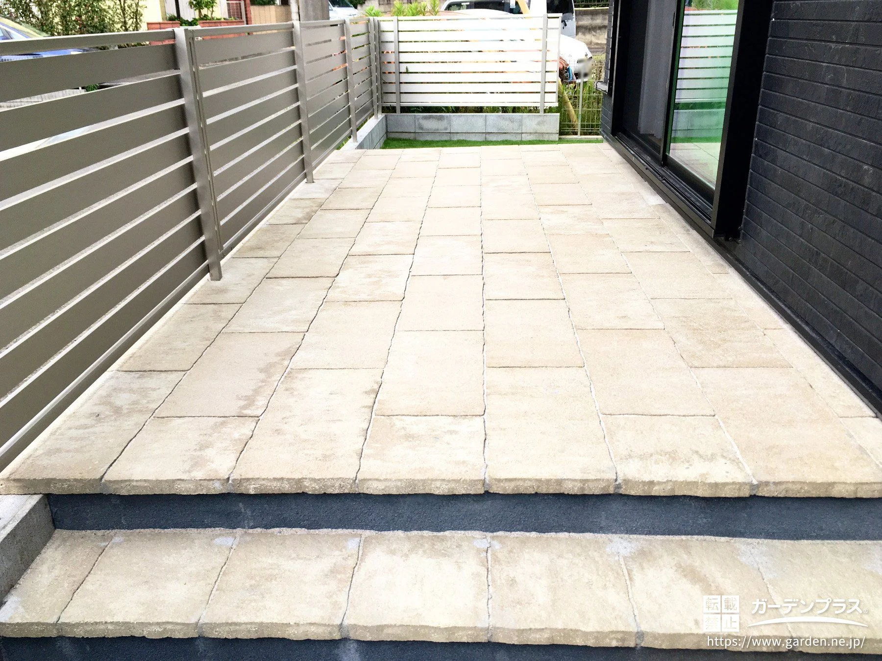 インターロッキングテラス:ブロックベース + コンクリートブロック コンクリート平板張り 東洋工業 カルムぺイブ・立ち上がり 塗装仕上げ