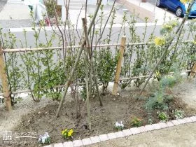 今回は芝張りと庭木植栽だけだったのでてきぱきと仕上げていただきました。芝が青々としてくるのはこれからだと思います。