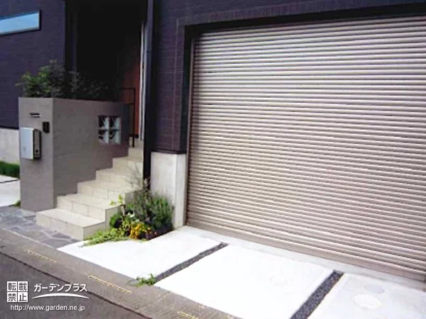 ご自宅の雰囲気に合わせて駐車場スペースはコンクリートでシンプルに仕上げました。また、アプローチの乱形石貼りは上品な仕上りとなりました。