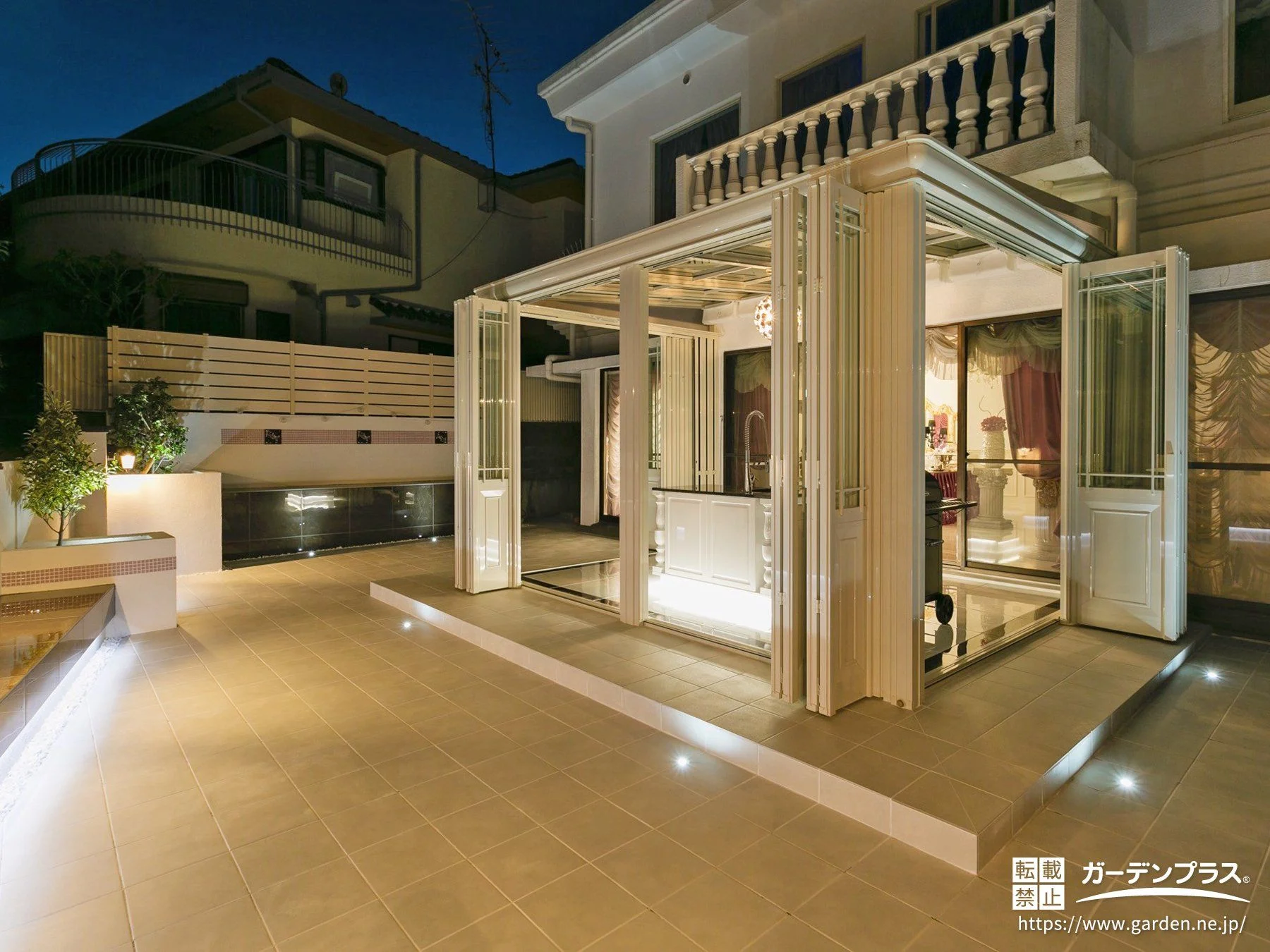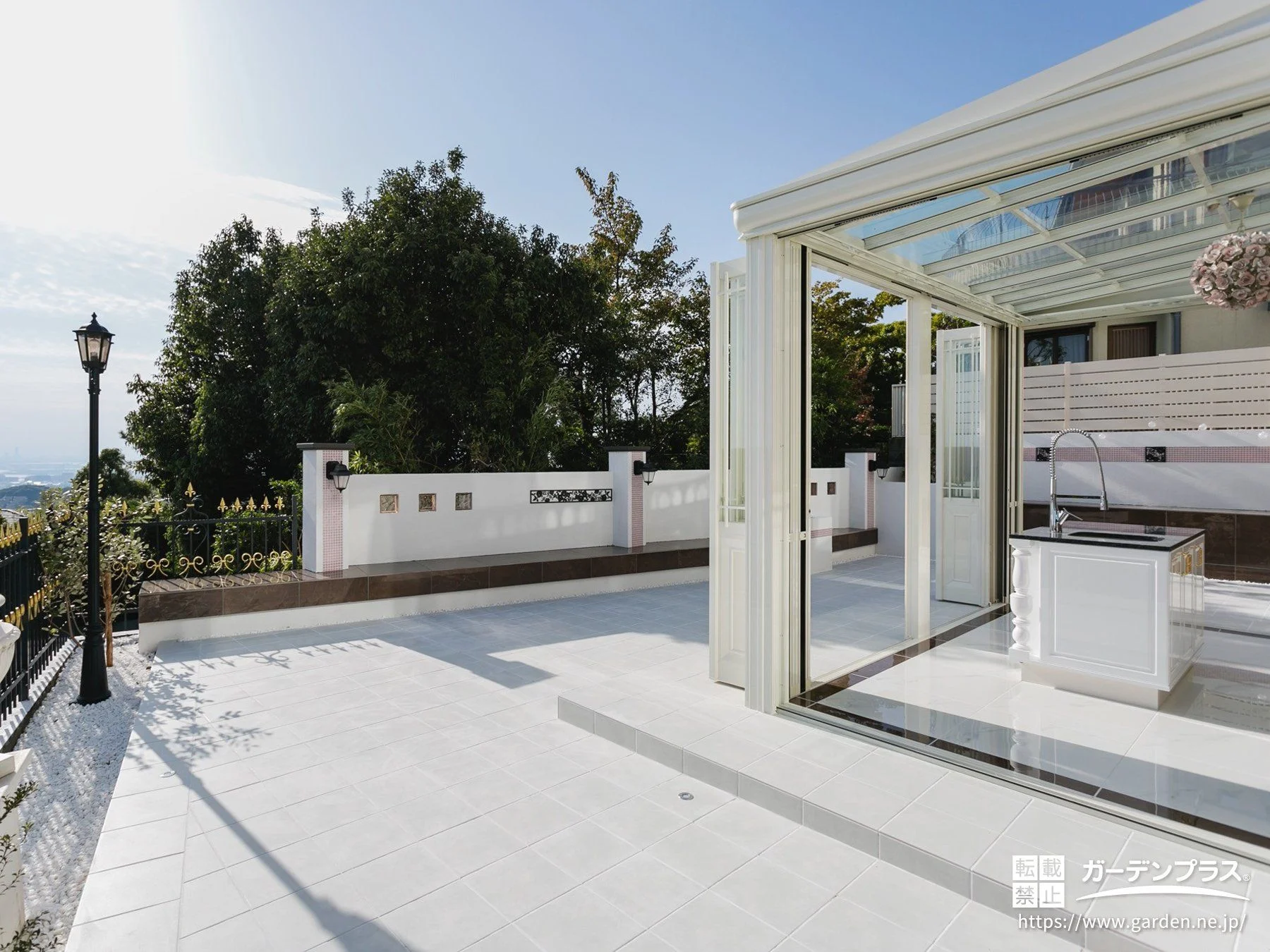 開放的なテラスでお客様をおもてなしするガーデンキッチン設置工事