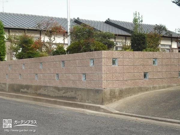 化粧ブロックでブロック塀を作り、ポイントにガラスブロックを組み込みました。