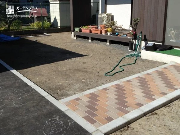 隣地との境界を測量で確定して地先ブロックを敷設。