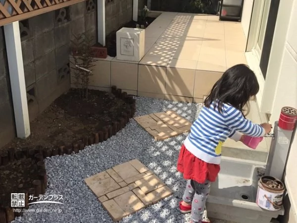 お庭に華やかさと明るさを感じる温もりのあるガーデンライフを届けるタイルテラス設置工事