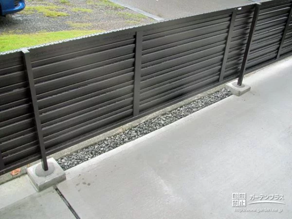 お庭のプライベート空間を守る傾斜ルーバータイプの外周フェンス