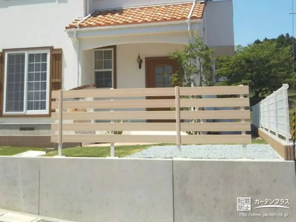 フェンス:LIXIL ハイグリッドフェンス + 化粧ブロック
