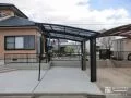 駐車スペースに土間コンクリートを打設し、縦連棟タイプのカーポートを設置しました。2台分のお車をゆったりと停められる広さがあり、フレームのブラウンの落ち着いた色合いが外観にも調和しています。屋根材には熱線吸収ポリカーボネートを採用し、夏の日差しによる車内温度の上昇を抑える効果も期待できます。さらに、着脱式のサポート柱を備えているため、積雪時にも安心してお使いいただける仕様です。機能性と安心感を兼ね備えた駐車スペースが完成しました。