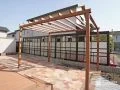 アールの優しい印象の屋根のカーポートと、可愛いいウッドデッキを設置しました。カーポートのやさしい日陰が、ウッドデッキまで届き、お子様の遊び場としても最適な空間に仕上げました。