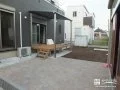 主庭部分のリフォームを承りました。 お庭部分の半分はインターロッキングで舗装、掃き出し窓にはウッドデッキとテラス屋根を設置しました。 雨の日も足元が悪くならず快適にお使いいただけます。