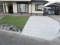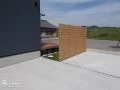 ご新築の外構として、駐車スペースから門まわり、家事動線までトータルで施工しました。2台用のカーポートは、屋根の曲線とクリアな素材がすっきりとした印象に。門柱やアプローチは建物に馴染むグレートーンで統一し、シンプルながらも洗練された印象に仕上げました。裏手にはサイドパネル付きのテラス屋根を設け、毎日の洗濯物干しも快適に。その他スペースは土間コンクリートや砂利で雑草対策を施し、ローメンテナンスになっています。暮らしやすさとデザイン性を両立した、機能性の高い外構プランです。