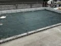 駐車スペースの塀を撤去し、角柱を設置しました。スペースを潰してしまうことなく、境界を示しています。角柱が目隠しにもなり、スタイリッシュな雰囲気の駐車スペースにしました。