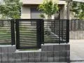外構一式工事を承りました。目を引くカーゲートはデザイン性の高い跳ね上げ式カーゲートを採用。細めの横桟が開放感はそのままにモダンでスタイリッシュな空間を演出します。門袖、門柱にはスクエアデザインがおしゃれな化粧ブロックを採用。アクセントに取り入れたテクスチャースティックが引き締め、お住まいに調和するデザインに設計いたしました。