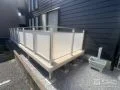 天然芝敷きのお庭でしたが、雑草にお悩みだったため撤去して防草シートと人工芝を敷設しました。草むしりに手間をとられることなく綺麗な緑を保てます。また、お庭と道路の境界にフェンスを設置。門扉も併せて取り付け、ゴミ出しの際等に便利に出入りできる工夫をしています。隣接して設置した枕木材もホワイトカラーで揃えることで、統一感が出ました。
