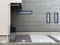 駐車スペースに土間コンクリートを採用し、耐久性とお手入れのしやすさを両立させました。お車が停まっていない時は、広々とした空間をそのままお子様の遊び場としても快適にご利用いただけます。玄関前には多機能でスリムな機能門柱を設置し、利便性を向上。玄関ポーチ階段は、タイル貼りで仕上げシンプルながらも洗練されたデザイン性を実現しました。犬走りには、防草シートと砂利を敷設し、雑草対策を施しています。