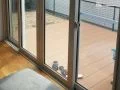 2つの掃き出し窓が面する入隅部分にウッドデッキを施工しました。基礎は土間コンクリートを打設してしっかり固め、室内の床と同じ高さに合わせたウッドデッキを設置。奥行き・幅とも十分な広さがあるので、お部屋と庭の中間のスペースとして楽しんでいただけます。