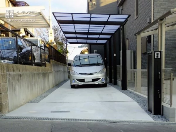 アルミ商品を3点設置しました。特に弊社のPB商品のカーポートやバルコニー屋根は金額以上にご満足頂ける商品になっています。