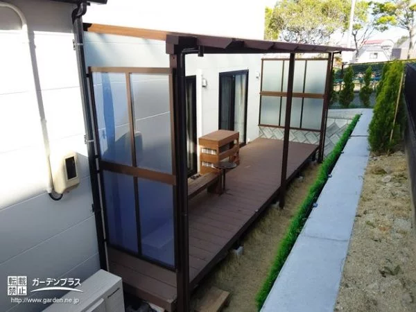 ウッドデッキを快適なスペースにサポートするテラス屋根設置工事