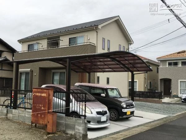新築のお住まいの外構工事を承りました。駐車スペースは、積雪に備えてスチール折板屋根のカーポートを設置し、冬の安心感を確保。2台用のスペースは土間コンクリートで舗装し、お手入れをしやすく。奥側は予備スペースとして使い勝手の良い砂利で整えました。また、明るい色味のアプローチが玄関まわりに元気な印象を添え、目隠しフェンスで通りからの視線もやさしくカット。雪国の暮らしに寄り添いながら、見た目にも気持ちにも心地よい外構に仕上がりました。