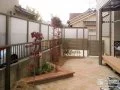お庭のウッドデッキ部分では、色鮮やかな植栽をみながらおくつろぎいただくことができます。背の高い目隠しフェンスのおかげで、お客様のプライベートなお時間を快適にお過ごしいただけます。