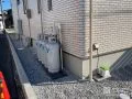 犬走りや勝手口まわりの雑草対策工事を行いました。隣家と接する犬走りには、隣家へ砂利が流出しないようにブロックも並べています。建物まわりの雑草やぬかるみを気にせず、すっきり気持ちよくお過ごしいただけます。