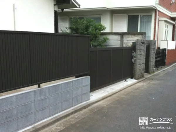 既存フェンスを撤去し、目隠し効果の高いフェンスを設置しました。縦格子タイプのB4型は目隠し機能と通風性を兼ね備えた万能フェンスです。