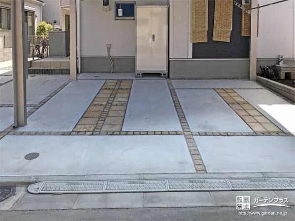コンクリートに自然石の優しい表情を取入れた駐車スペースリフォーム工事