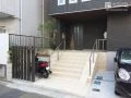 アプローチは、ご自宅のお色目とは対照のタイルを用い、玄関先を明るく仕上げました。また、階段の両脇に手すりを設け、階段の昇り降りの安全性を高めました。