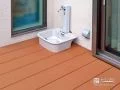 テラスに土間コンクリートを打設しました。段差がなくなり歩きやすいほか、掃除もしやすくなりました。コンクリートには収縮を自由に起こさせることによって応力の低減をはかる収縮目地を入れているため、ひび割れも防止できます。また、玄関ポーチ前には赤色が可愛らしい宅配ボックス付きポストを設置。お留守の際でも安心して荷物を受け取れます。