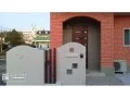 個性的な外観のご自宅に馴染むよう曲線を意識した門柱デザインを取り入れました。玄関扉と角柱の色や質感を合わせることで全体として統一感のある雰囲気に仕上がっています。