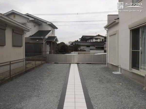 主庭の雑草対策工事をご依頼いただきました。広いお庭でしたが、まずは庭木や雑草を撤去して整地し、防草シートと砂利を敷設。園路として中央にタイルをならべました。また植栽が目隠しをしていた隣家との境界には目隠しフェンスを新たに設けて、プライバシーを維持しています。すっきりしたローメンテナンスなお庭です。
