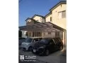 重厚感のあるブルーの屋根材が目を引くカーポート設置工事