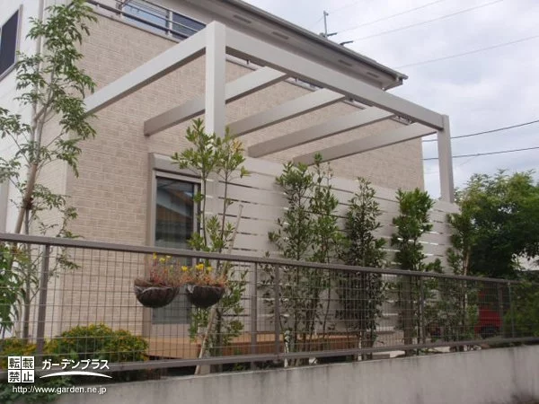 今回は、外周フェンスとテラス屋根の設置工事を行いました。お家の白い外観にあわせ、白色のパーゴラと目隠しを設置いたしました。明るく美しい空間に仕上げました。