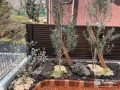 姉妹店エクスショップにてテラス囲いを施工されたお客様から、植栽や人工芝の追加工事をご依頼いただきました。元々防草シートと砂利をしっかり敷かれていたお庭でしたが、ガーデニングを楽しみたいとのことで、植栽スペースを作り、オリーブやシマトネリコといった育てやすい庭木をプラス。足元は砂利の代わりに瓦チップや人工芝といった色鮮やかな材料で舗装したので、緑の少ないシーズンも彩り豊かな外構になりました。ファサードには、こぶし大の溶岩石でマルチングしたロックガーデンを作りました。雑草が生えにくくなるだけでなく、植栽が少なくても見映えがよく、道路からの景観も華やかです。植栽が育つにつれて建物の見え方も変わる、素敵な外構となりました。