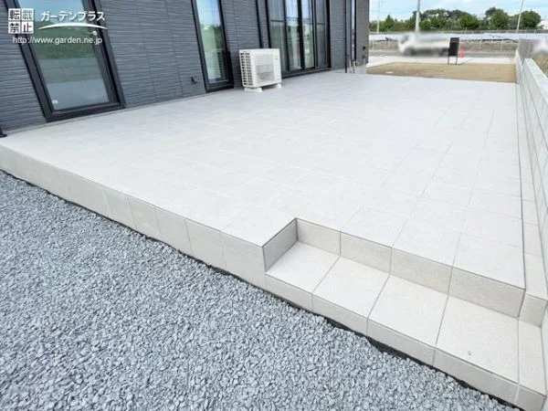 新築のお住まいの1期工事として、お庭工事をご依頼いただきました。広いお庭を自由に心地よく過ごすための場所として、タイルデッキを施工。お庭幅いっぱいのサイズにしたことで、青空の下で食事をしたり、星空を眺めながらくつろいだりと様々なシチュエーションが浮かびます。ホワイトカラーのタイルをあしらい、爽やかで開放感溢れるお庭になりました。