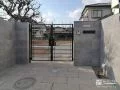 建物の建て替えに伴い、外構も全面リフォーム。広い敷地をゆったり使った外構をプランニングしました。駐車スペースは4台分の余裕ある広さと、背後にシャッター付きのガレージを設置。アプローチは幅の広いインターロッキング平板で舗装しています。建物の顔となる門まわりは大きなグレーのタイルで化粧し、ブラックの鋳物調門扉や格子型フェンスを組み合わせたモダンな印象に。道路に沿って続く袖壁と合わせ、お住まいに品格を生み出します。