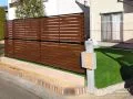 既存の生垣を撤去し、替わりに目隠しフェンスを設置しました。2段支柱を採用することで高さを確保し、しっかりとプライバシーを守りながらも横スリット入りデザインのため圧迫感を与えません。木目調の横板とブラックカラーのフレームの組み合わせで、モダンで洗練された仕上がりとなりました。主庭には防草シートと人工芝を敷き、雑草の発生を防ぎながらメンテナンスの手間を軽減。季節を問わず美しい緑の景観を楽しめる、快適な空間の完成です。